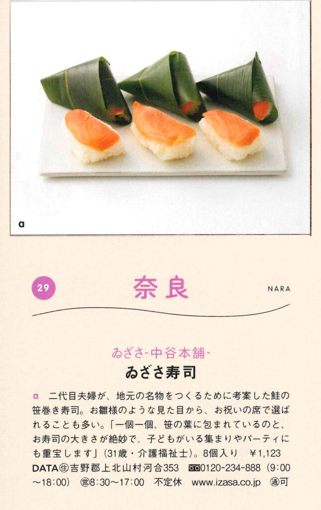 雑誌「CREA」Winter号にて47都道府県の手みやげリスト特集にて奈良の手みやげの一品として当社の「ゐざさ寿司」が紹介されました。CREA読者のお客様からのご推薦とのことで、とてもうれしい取材依頼でした。